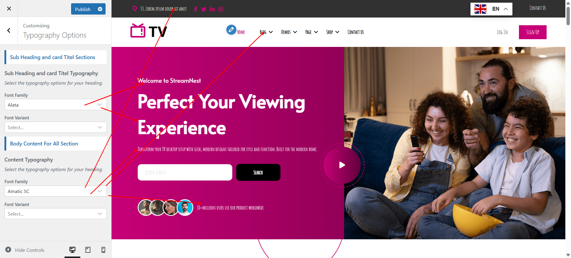 In order to proceed with Typography Options, you can change complete font style just one click. follow the instructions given below.