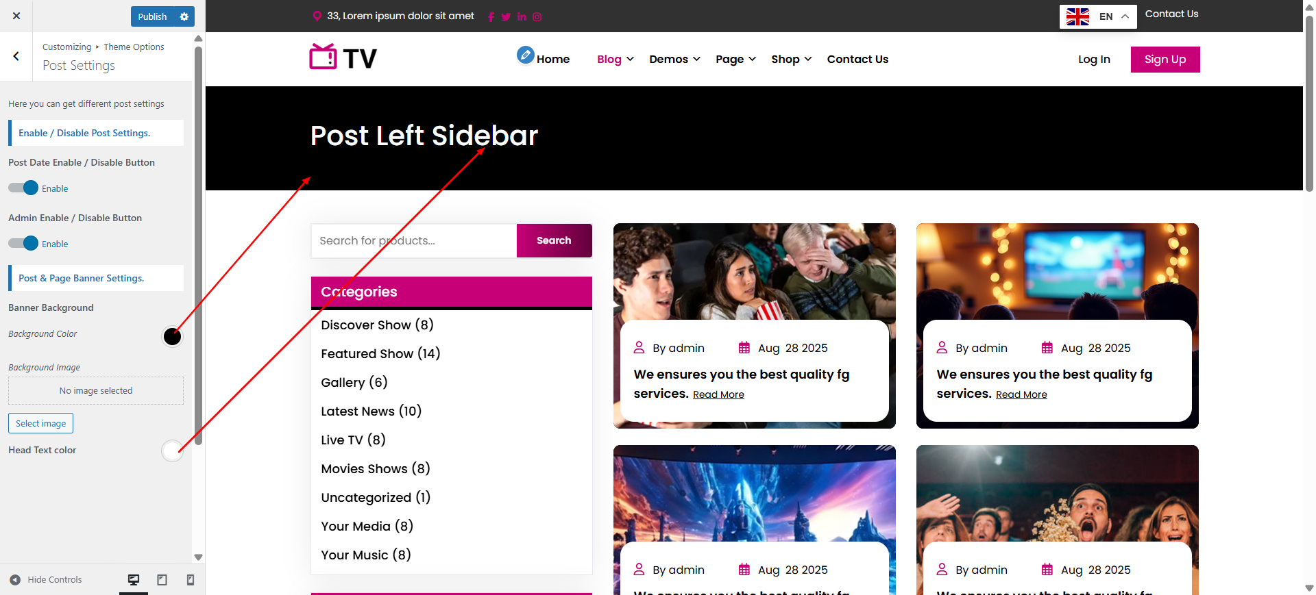 Follow these instructions to setup post left sidebar page.