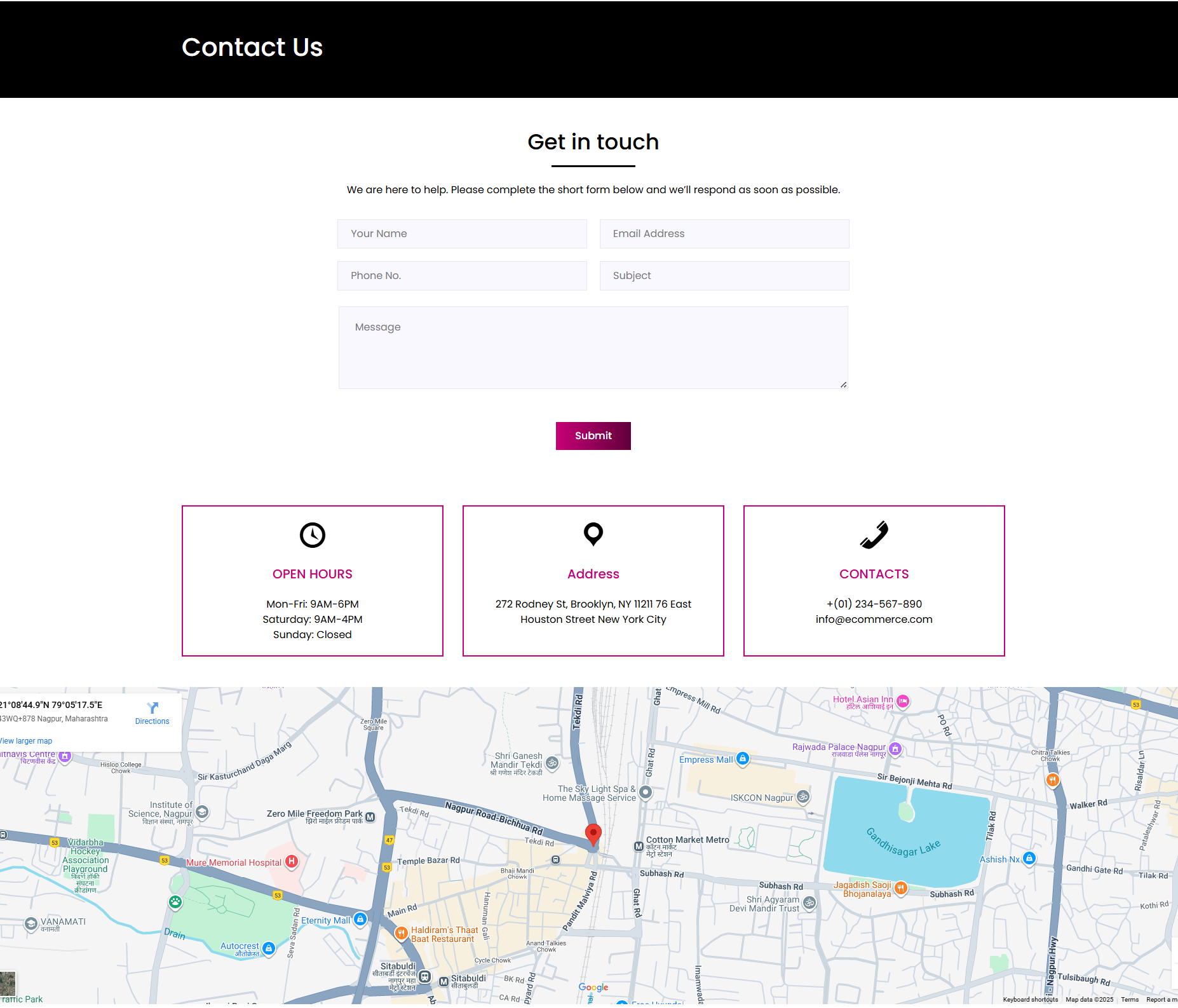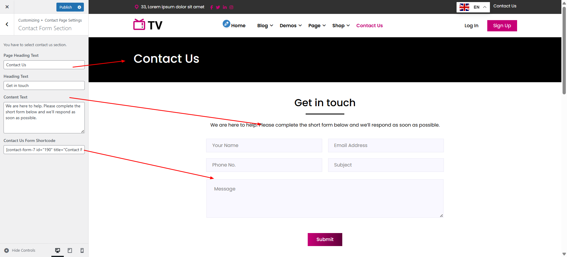 In the Dashboard, go to Appearance >> Customize >> Contact Page Settings >> Contact Form and Location Section