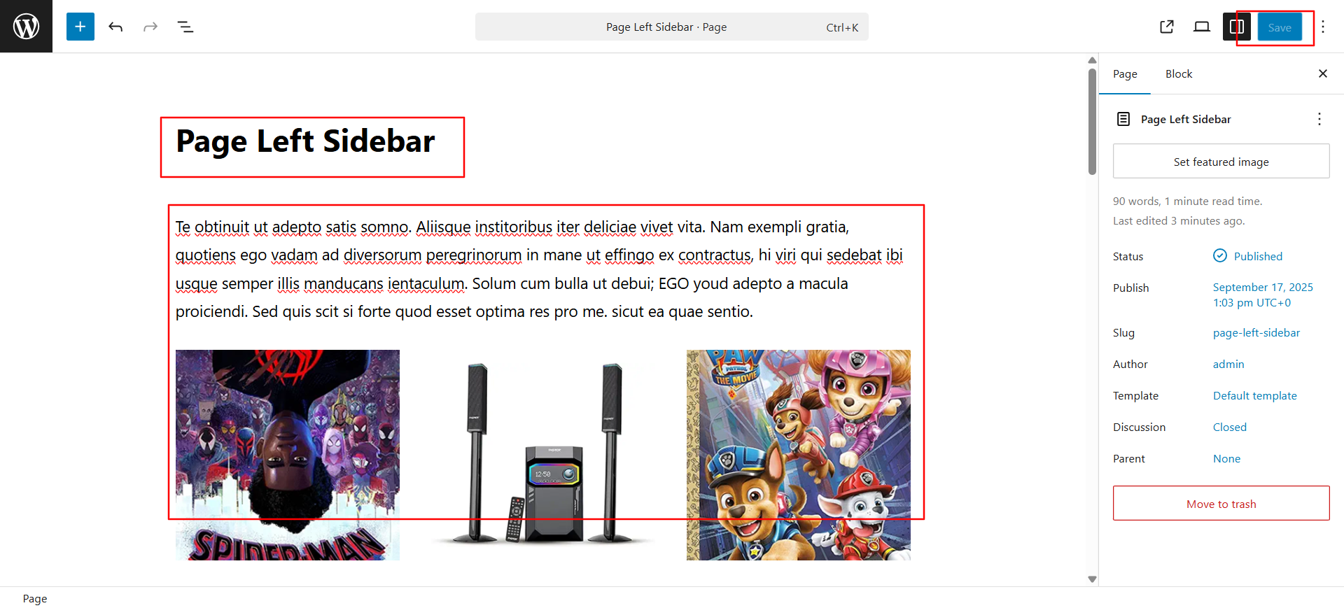 Follow these instructions to setup page left sidebar page.
