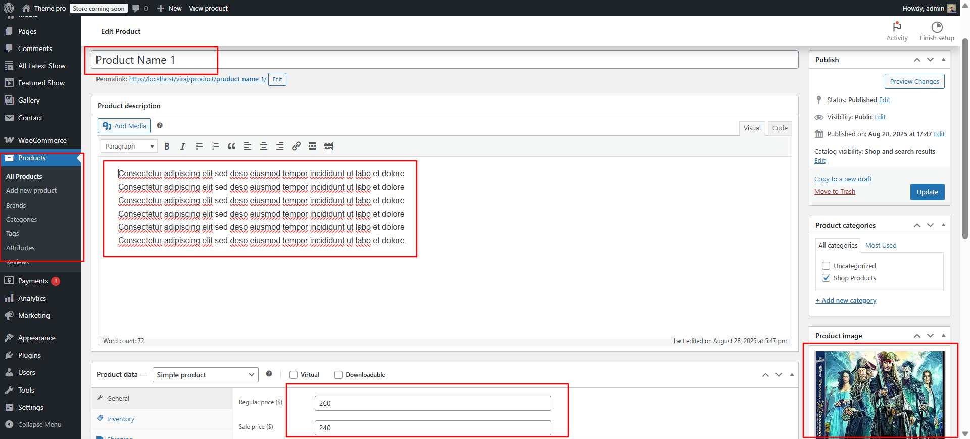 In the Dashboard, go to Products >> Add New