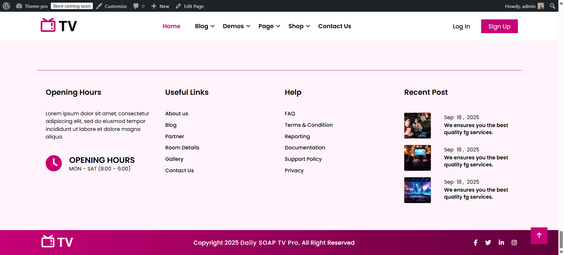 In the Dashboard, go to Appearance >> Daily SOAP TV Pro Themes Setup