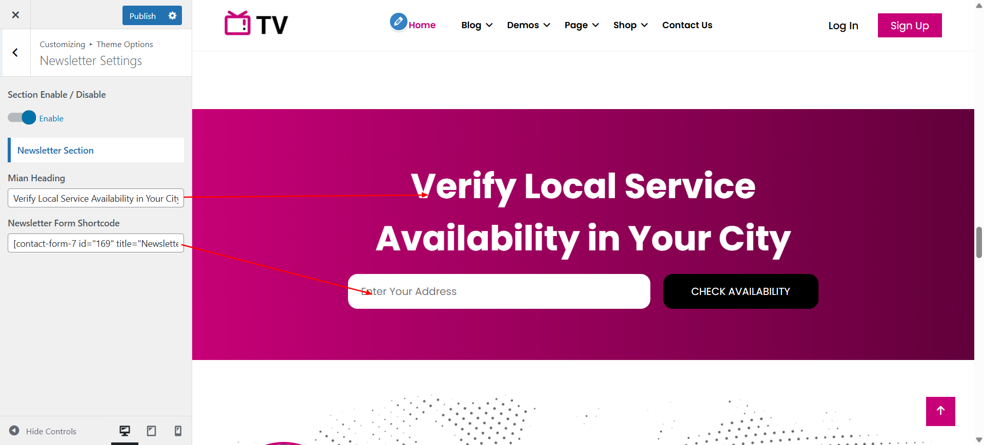 Place the Contact Form-7 shortcode code in customize option.