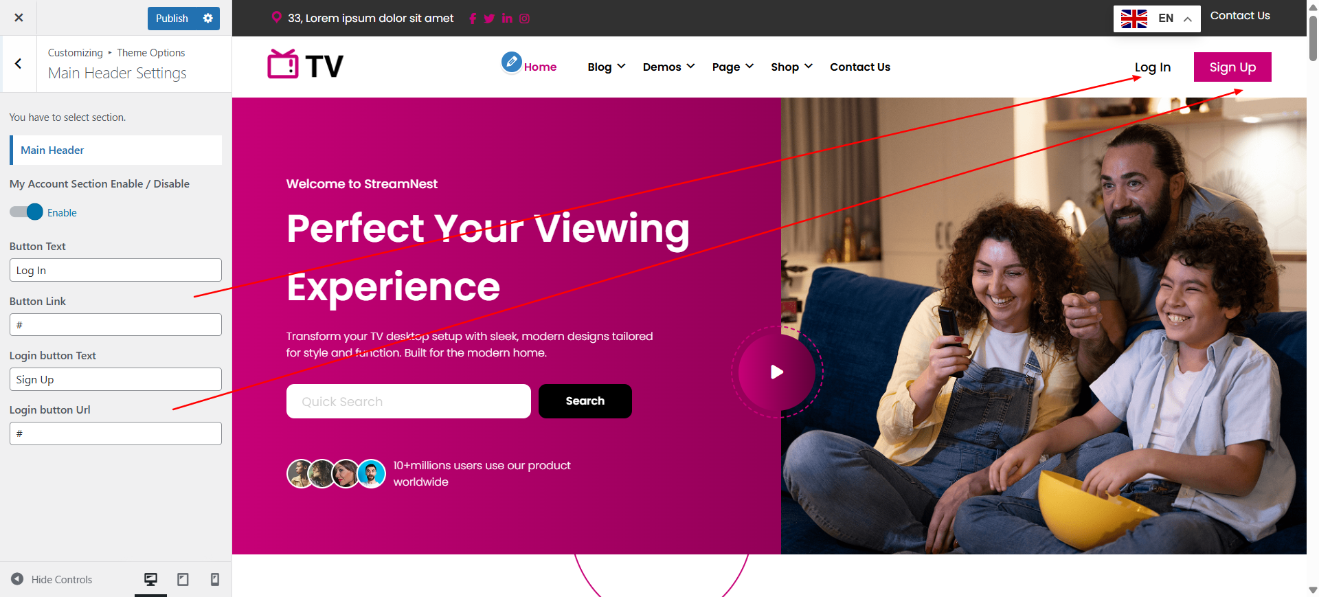 In the Dashboard, go to Appearance >> Customize >> Theme Options >> Header Menu Settings