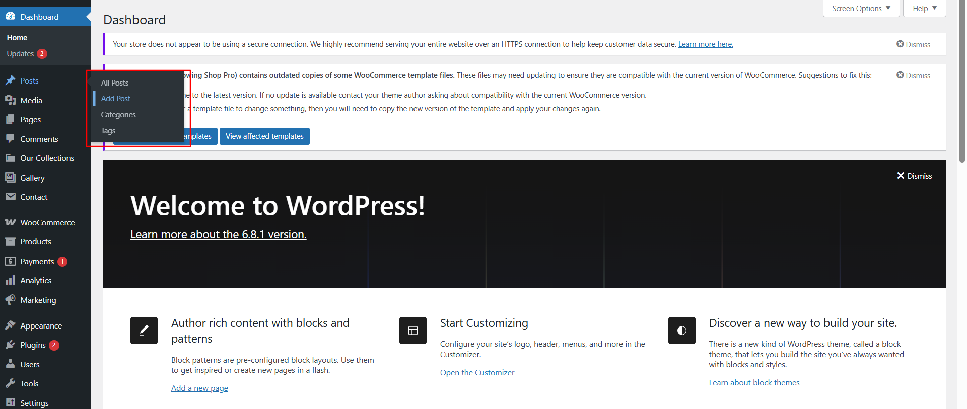 In the Dashboard, go to Posts >> Add New
