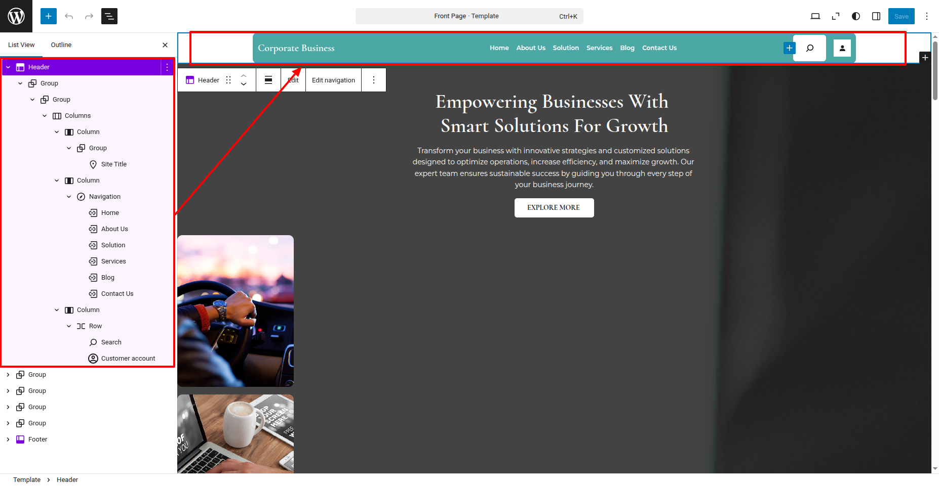 In order to proceed with Header follow the below steps.