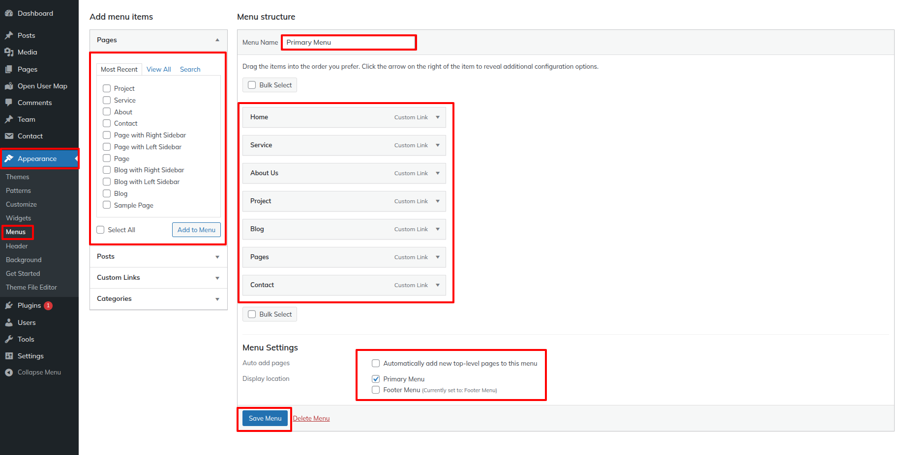 Click the Save Menu button once you've added all the menu items you want.