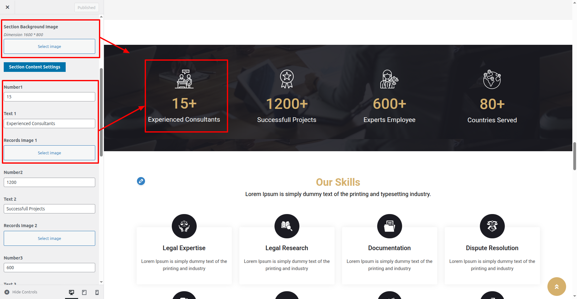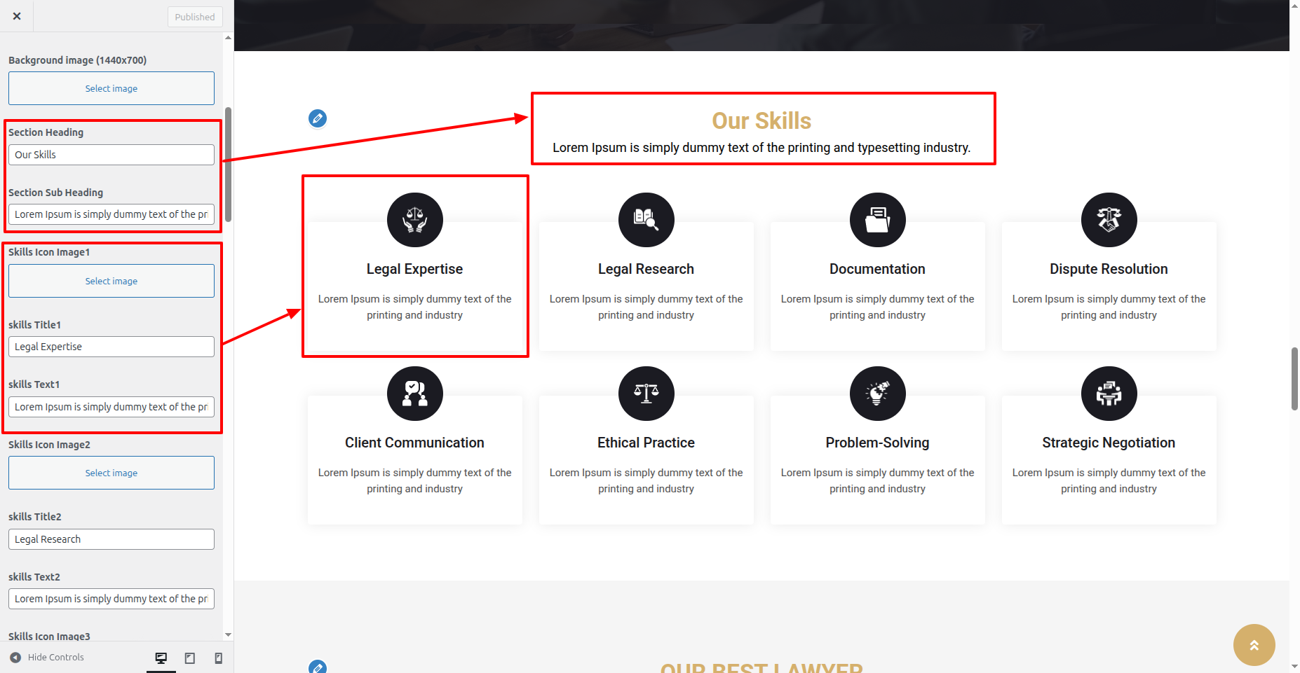 In the Dashboard, Move Forward to Appearance >> Select Customize >> Select the Theme Settings option >> Skills Section