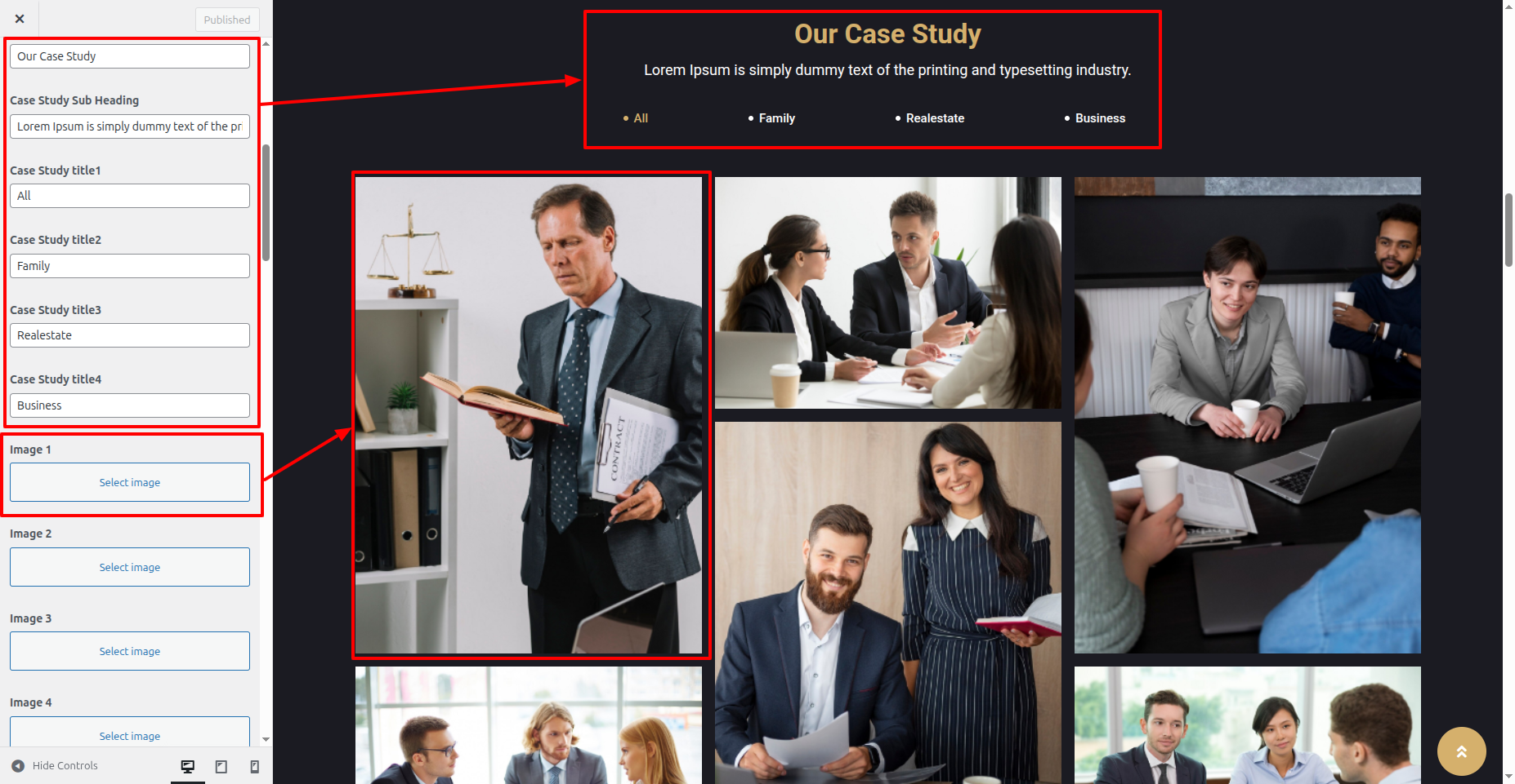 In the Dashboard, Move Forward to Appearance >> Select Customize >> Select the Theme Settings option >> Case Study Section