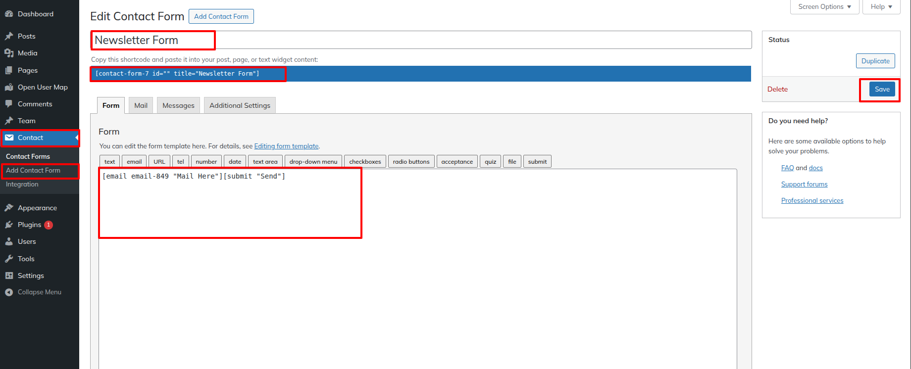 For Adding Contact first you have to add Contact form 7 plugins.
