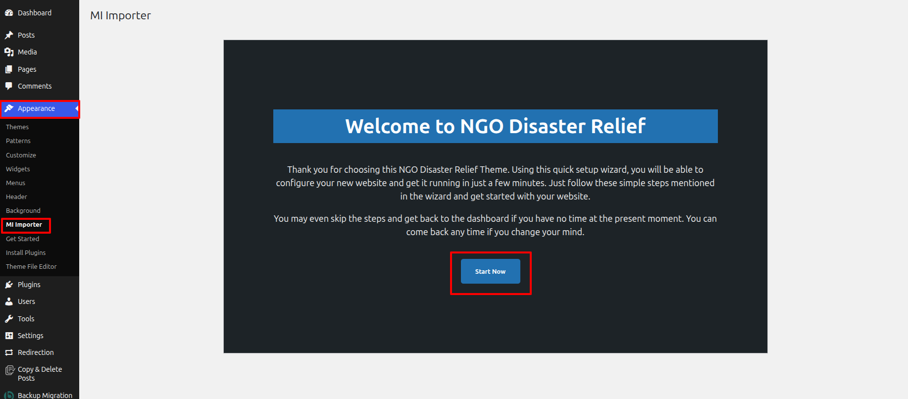 Follow below instructions to setup NGO Disaster Relief theme.